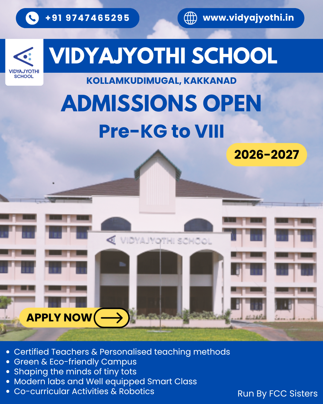Welcome to Vidyajyothi School, where all children start their careers with sparkling imaginations, fertile minds, and a willingness to take risks with what they think.Vidyajyothi School, Thrikakkara is one of the best ICSE schools in India. The school is a leading educational institution affiliated with KE-175, following the ICSE (Indian School Certificate Examination) curriculum, which is the most advanced one now available in India. Founded in 2017, it is budding with high expectations holding the hands of the future. Vidyajyothi School has been awarded the Top 500 schools in India at ET TECH X, Hyderabad in appreciation of our committed efforts and innovative approach to groom the young learners with skills of life.Housed in the district of ‘The Queen of Arabia’, the school has immense facilities for the all-round development of students. The school is eco-friendly with vast outdoor playground, well-equipped labs for Science and IT, smart classrooms, Library, well-maintained turf, Ball pool, indoor play area for kids,